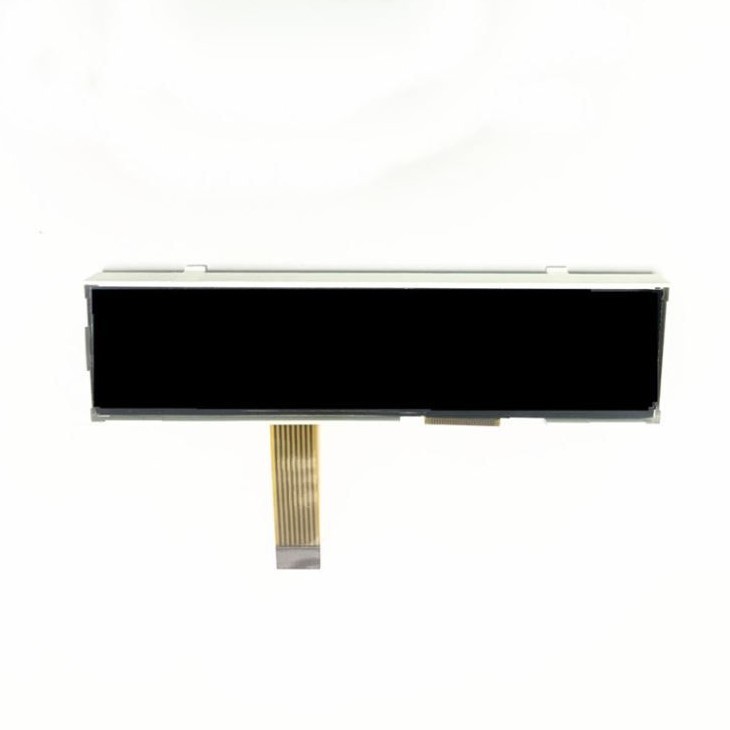 Detta är den anpassade LCD-skärmen med svart segment med vit led-bakgrundsbelysning, VA-material. Denna LCD används för UPS-ström; vars dimensionsstorlek är 107,30x27,45 mm och visningsytan är 101,70x19,85 mm; med HT1621-kontroller, FPC-kontakt.
